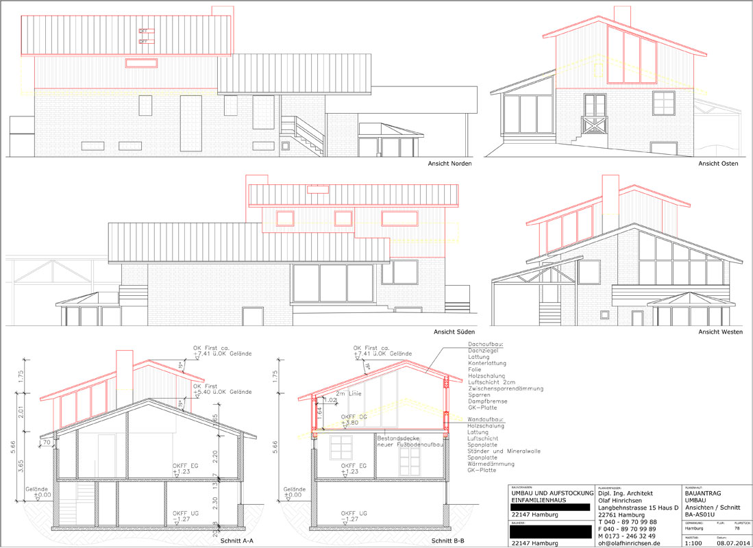 Aufstockung eines Einfamilienhauses um 1 Geschoss in Holzbauweise